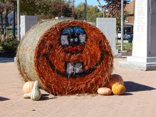 Inour drives we see the silliest things. Being Halloween time there were decorations everywhere.  We saw several hay bales painted.
