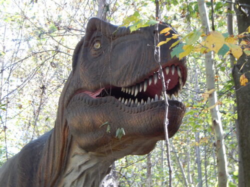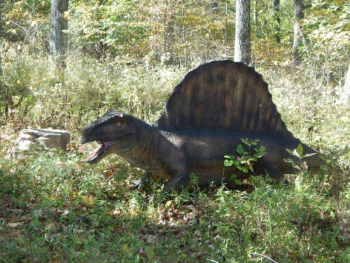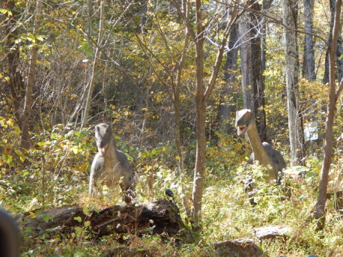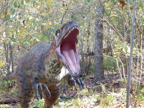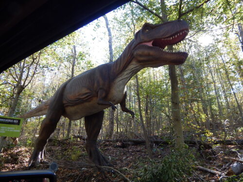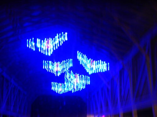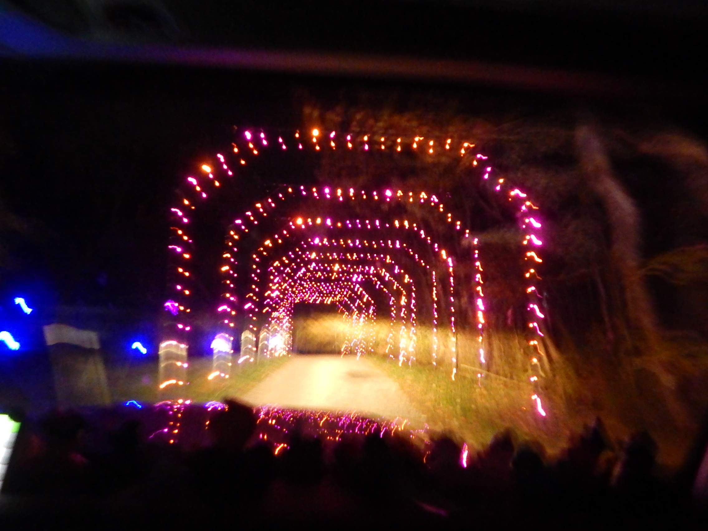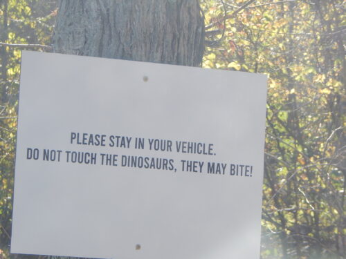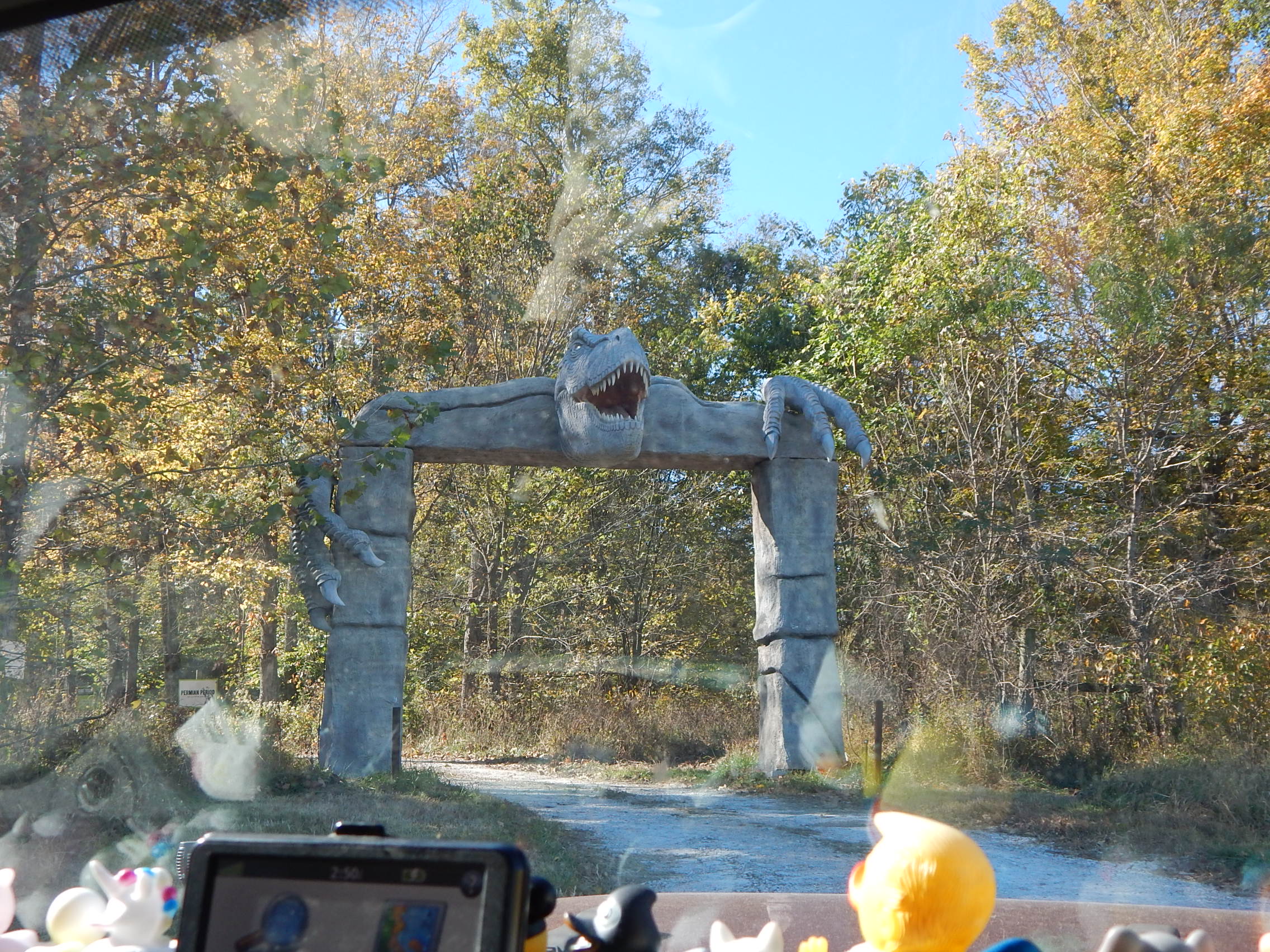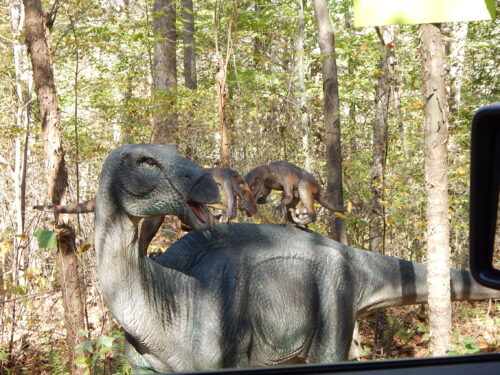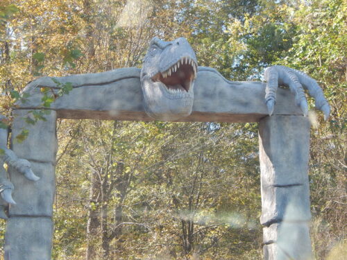 A bridge we crossed .  We saw a few lights and then journeyed through dinosaur land, but no lights.  What was going on?  Were the dinosaurs loose?  We came down the hill where a man stopped us and told us their electricity was down so we got a complete refund and were saved from the dinosaurs!