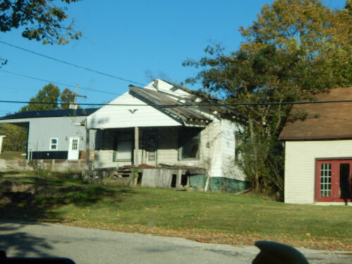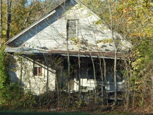 Nestled among the trees and weeds this little house cries for attention.  If I were very rich, I would travel the country roads and find these houses and fix them up and give them to families who promise to take care of them.  And I’d keep tabs to be sure they did!