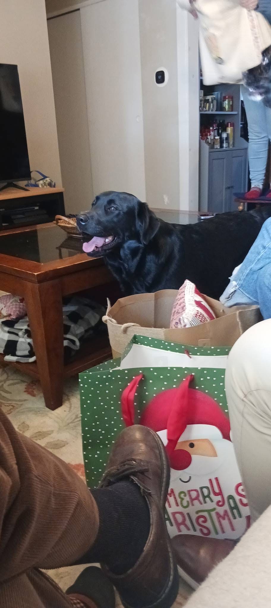 We went to our granddaughter’s house after Christmas and this is our granddog. Another Lab. She is so sweet.