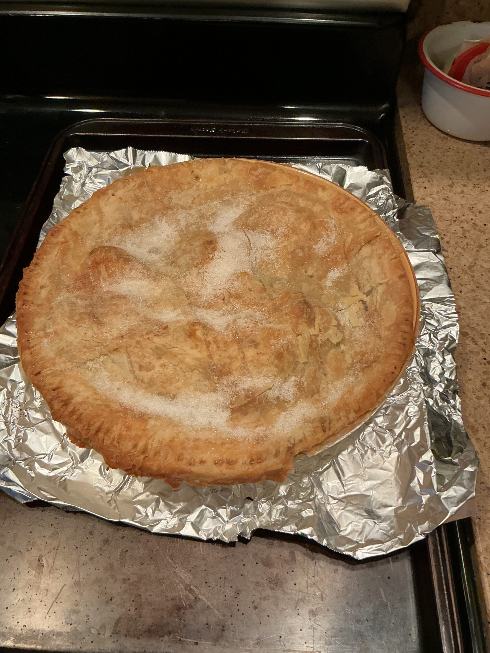 I felt like baking today so I baked an apple pie. To prove you can teach an old dog new tricks, I just learned this year that pie dough is easier to roll and work with if you chill it for a couple of hours. It has made my pie making so much easier. This pie turned out perfectly and it is good, too.